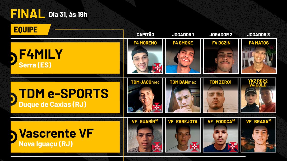 E-Sports: Veja fotos dos integrantes das equipes finalistas do 1º Torneio Vasco de Free Fire