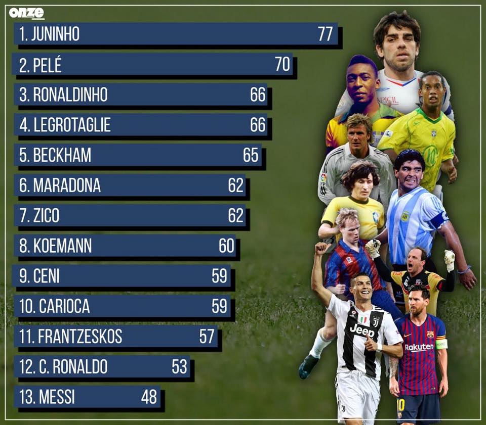 Voici le classement des joueurs ayant inscrit le plus de coups francs en carrière ! 🎯