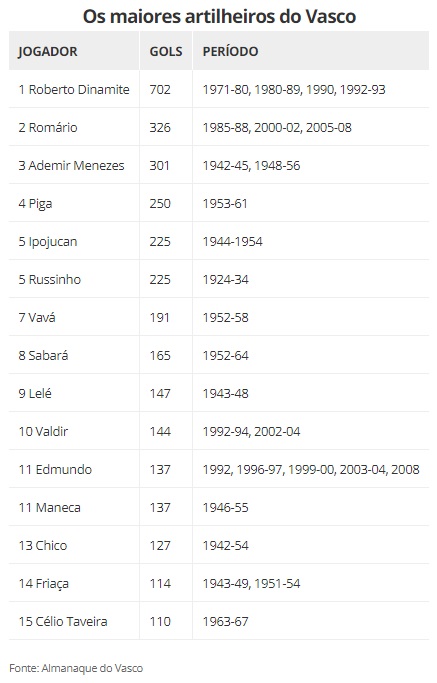 Na lista dos 15 maiores artilheiros do Vasco (veja abaixo), repleta de jogadores do famoso Expresso da Vitória (além do trio Roberto, Romário e Edmundo), Célio tem algo a se orgulhar: foi o jogador, dentre todos, que tem a melhor média de gols por temporada - fez 115 em apenas quatro anos de clube.