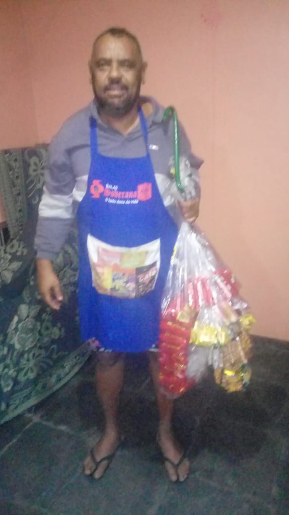 Ex-funcionário do Bangu, ele mora com a filha de 20 anos, que está desempregada, e os dois netos - um de seis e outro de dois anos.