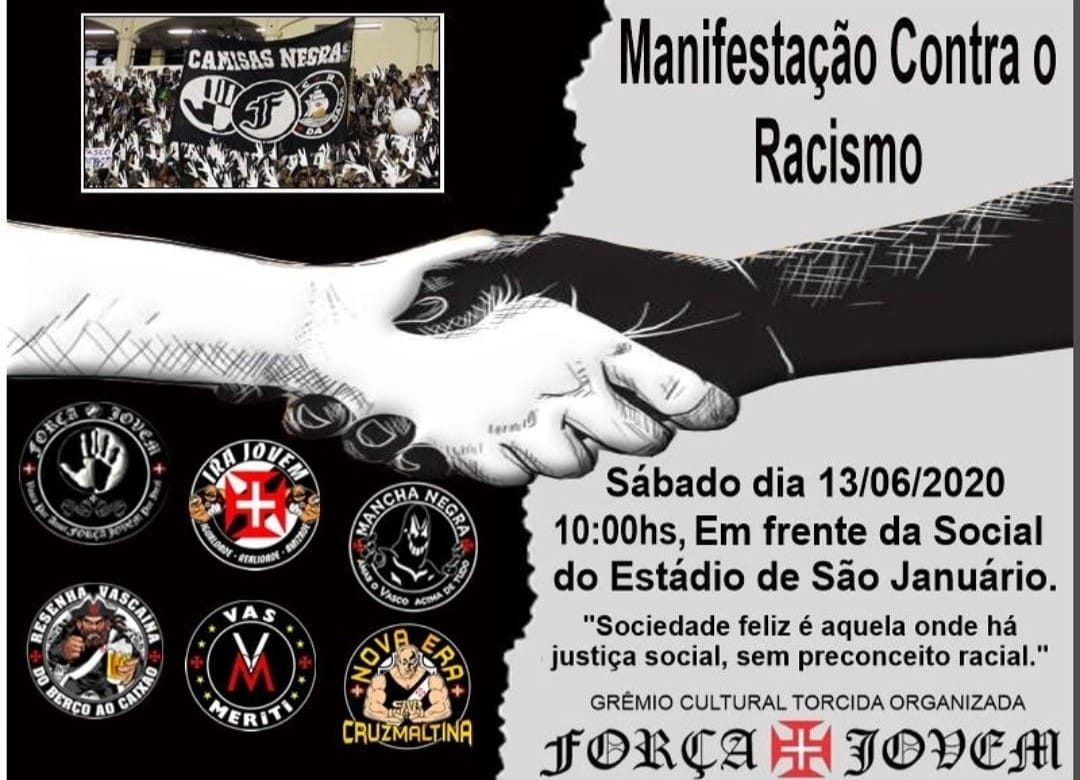 Torcidas organizadas do Vasco marcam manifestação contra o racismo para sábado em frente a São Januário