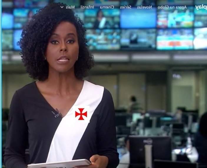 Torcedores fazem montagem e colocam Cruz de Malta na blusa da jornalista Maju Coutinho; veja