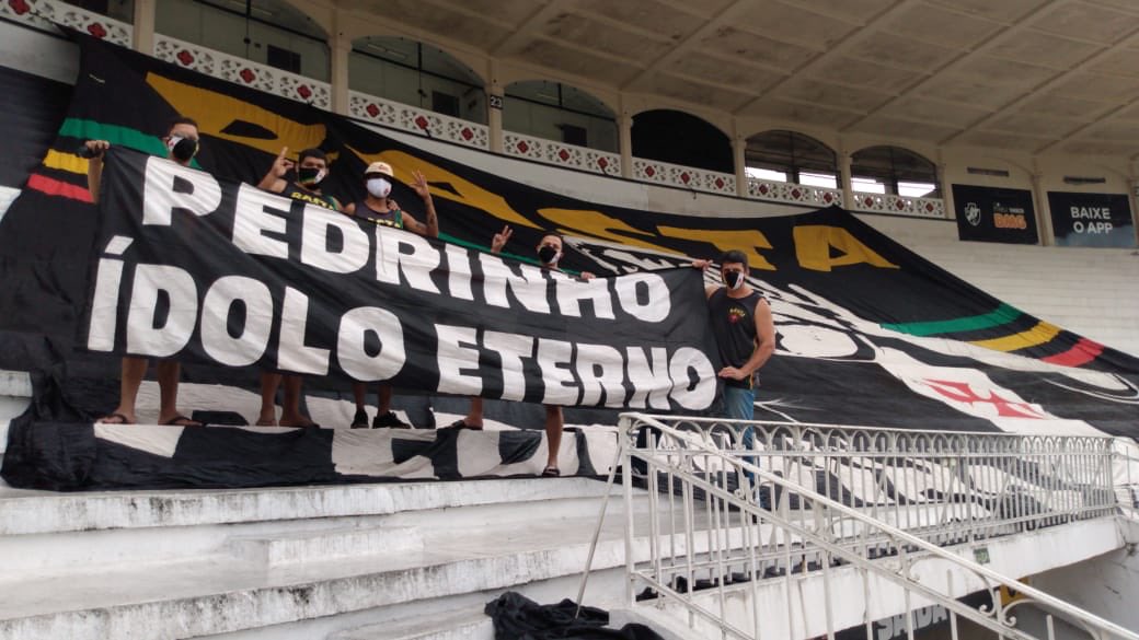 Rasta do Vasco estendeu bandeiras em homenagem a Pedrinho em São Januário