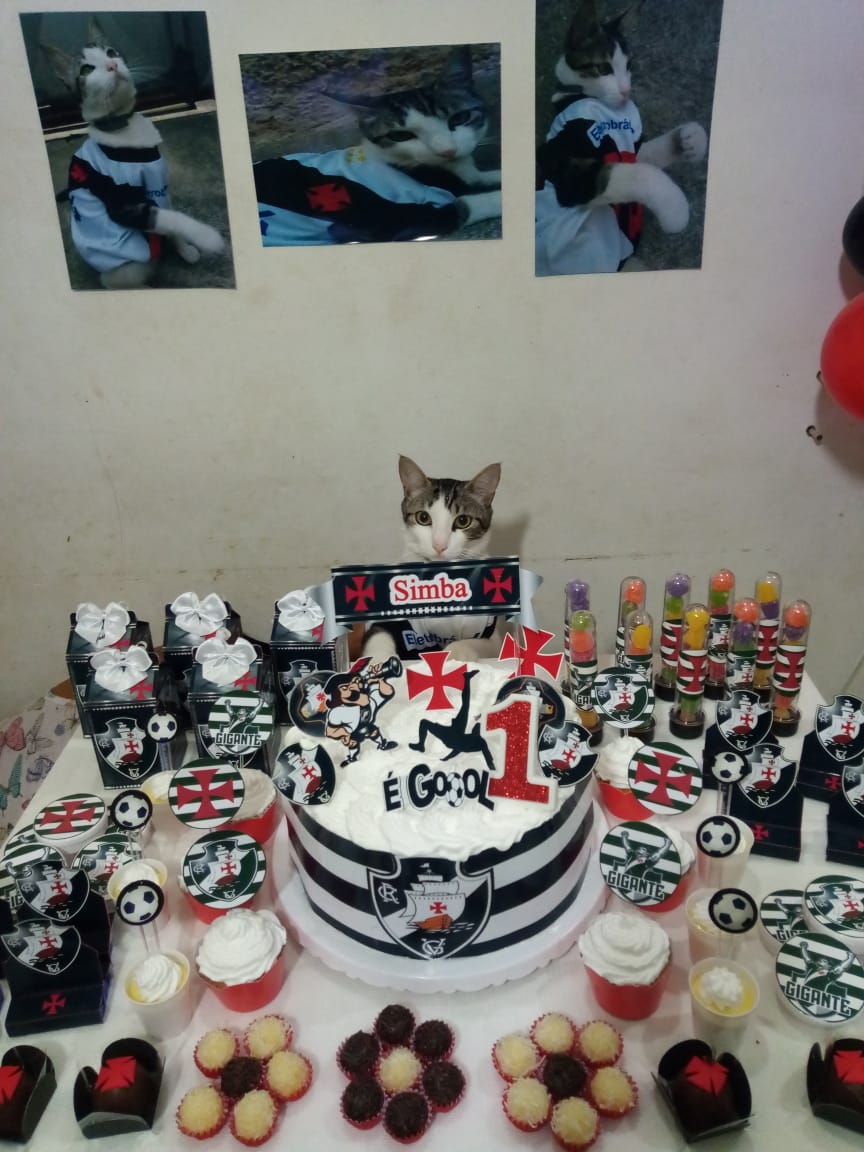 Gato vascaíno ganha festa de 1 ano e foto viraliza na internet; veja