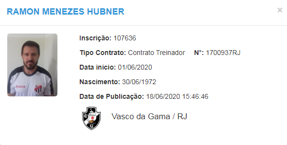 Ramon Menezes registrado pelo Vasco no BID da CBF.