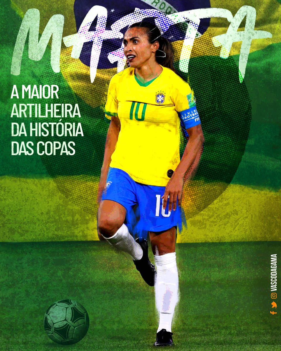 Em rede social, Vasco homenageia Marta, que há 1 ano se tornava a maior artilheira da história das Copas