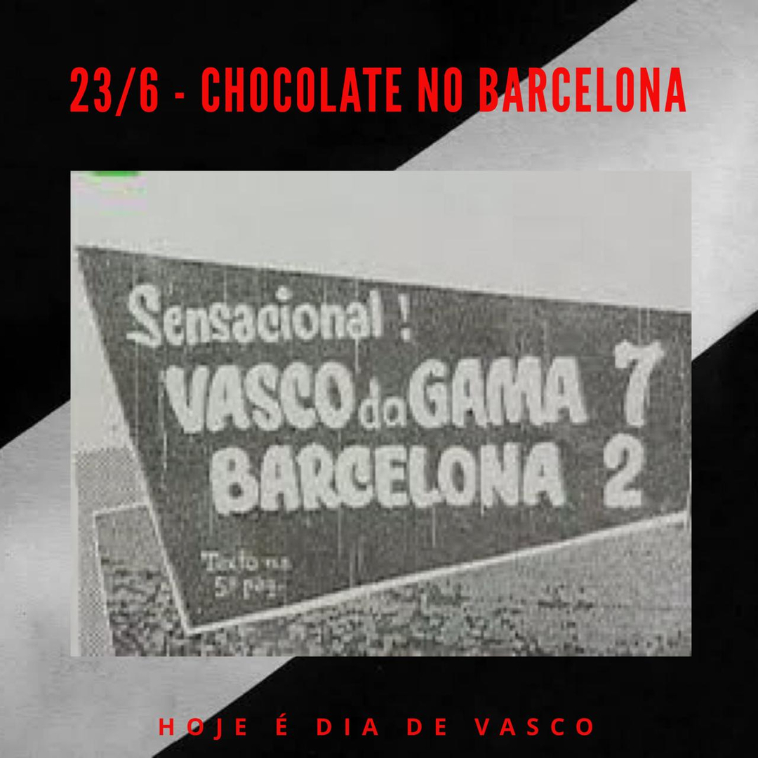 Hoje é dia de chocolate catalão! Nessa data, em 1957, o Vasco empunha ao Barcelona uma das maiores goleadas até hoje sofridas pelos anfitriões em sua casa. 7 a 2, com gols de Laerte (3), Vavá (2), Válter Marciano e Wilson Moreira, para estupefação total dos locais