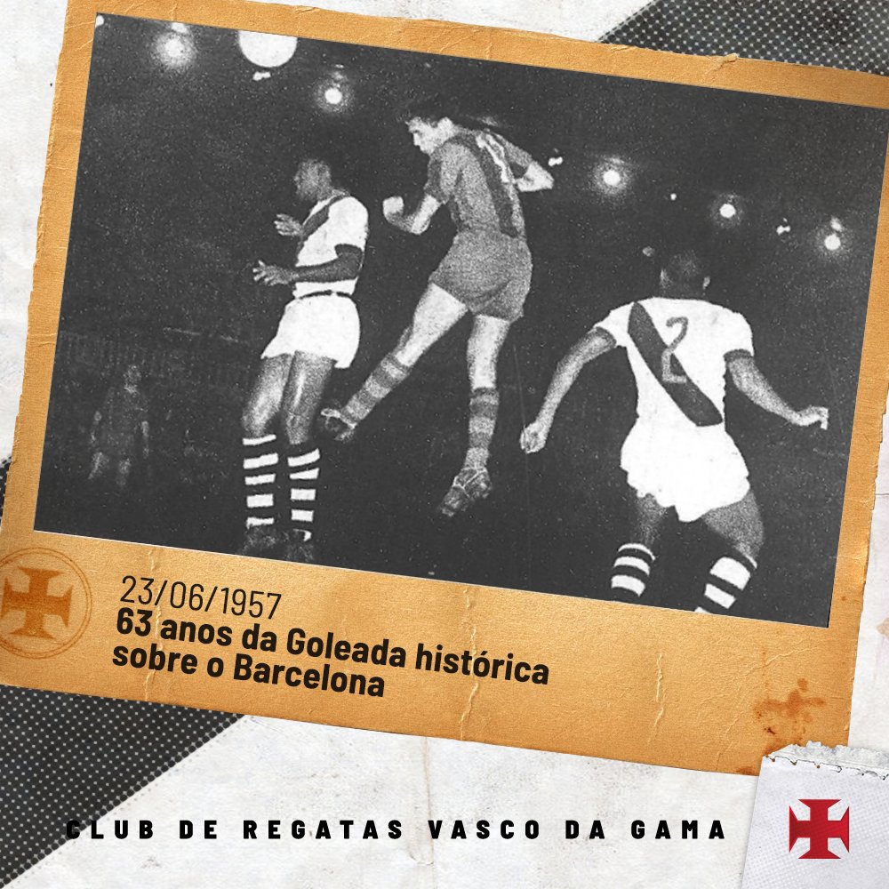 Vasco relembra, no Twitter, goleada sobre o Barcelona por 7 a 2 há 63 anos