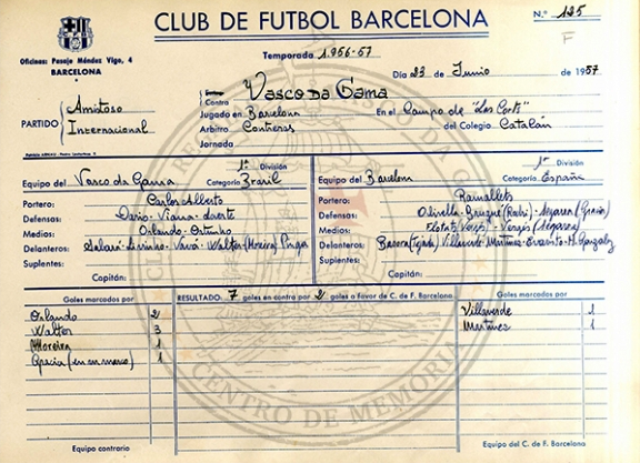 Confira a súmula da goleada do Vasco por 7 a 2 contra o Barcelona há 63 anos