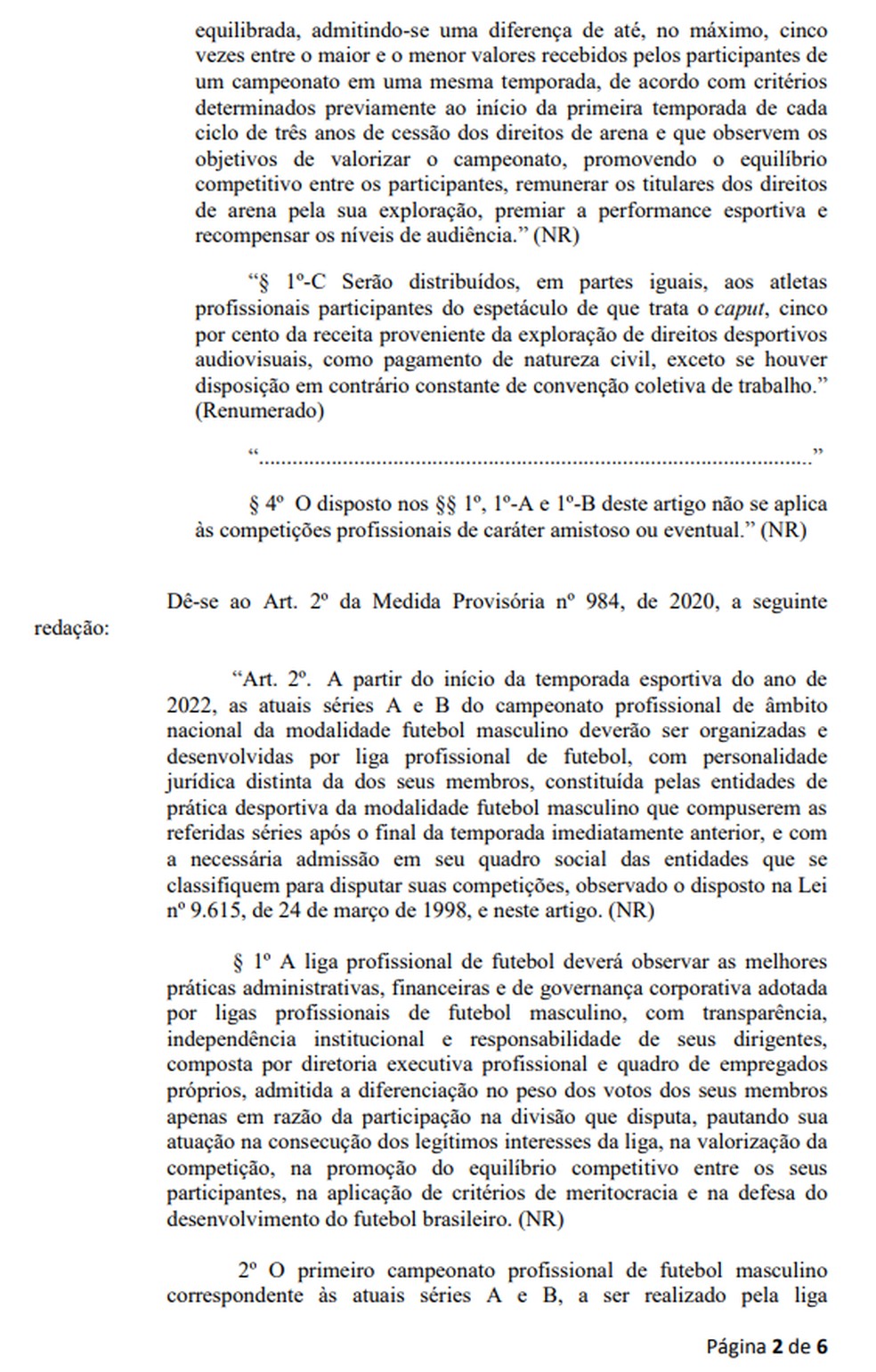 O texto deixa claro que os contratos atuais seguiriam válidos até o fim do período de vigência, e dá um prazo até 2022 para a estruturação da liga. Segundo o deputado Pedro Paulo, a MP de Bolsonaro adiantou um debate no Congresso que já havia se iniciado com o clube-empresa, e pode ser a oportunidade para mudanças profundas.