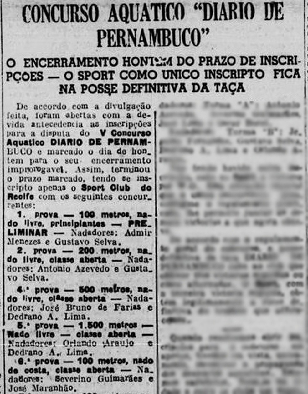 Enquanto talhava a imagem de atleta promissor com talento e liderança, Ademir Menezes também se arriscava em outras modalidades no Sport. No ano seguinte ao conquistar o Campeonato Pernambucano de Juvenil no futebol, os recortes de jornais da época demonstram que ele disputou provas de natação e atletismo.