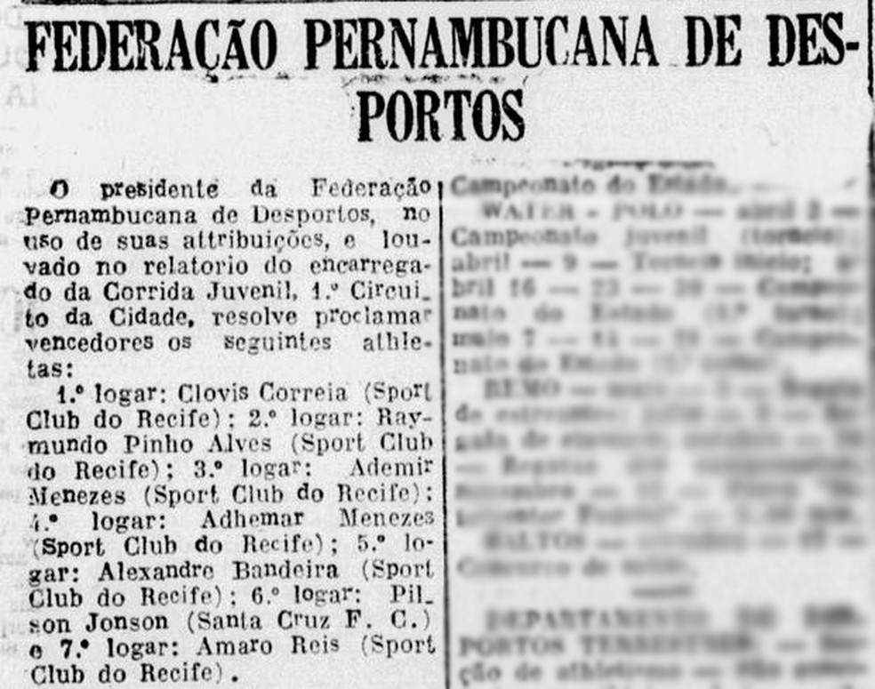 Em 1939, por exemplo, correu a prova de 50 metros rasos no 1º Circuito da Cidade promovido pela Federação Pernambucana de Desportos. Na categoria juvenil, ficou em terceiro lugar. A velocidade, de fato, seria uma aliada do rubro-negro dentro dos campos.