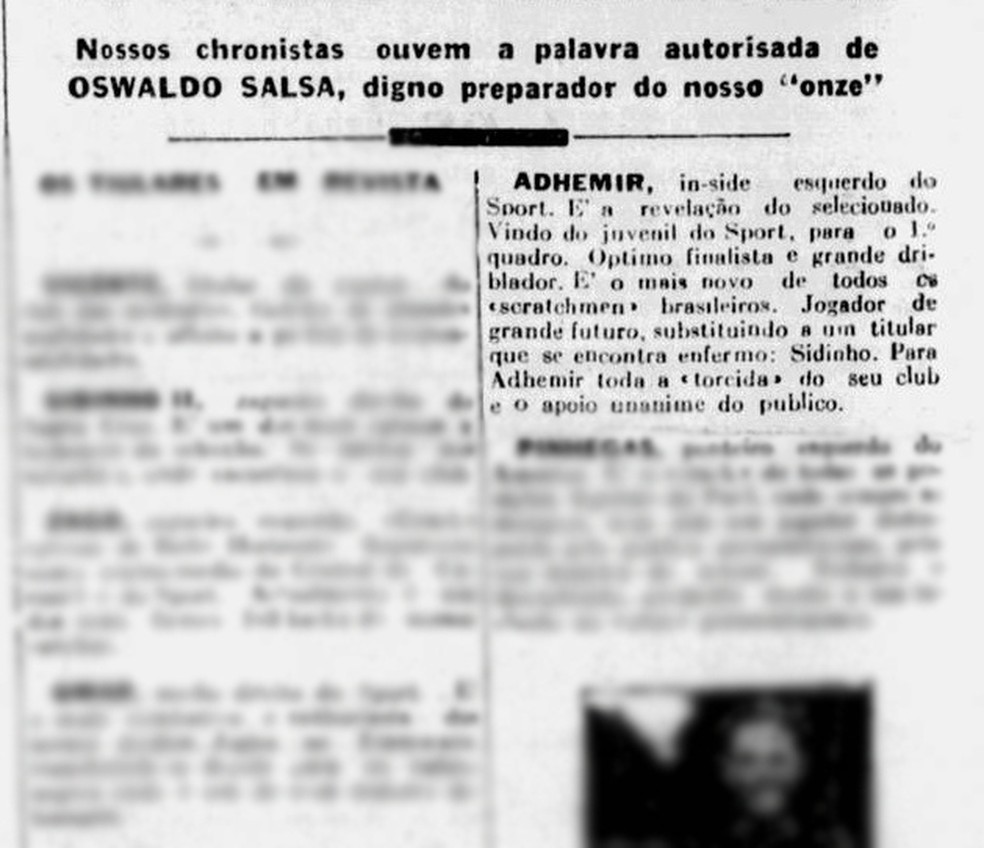 "É a revelação do selecionado vindo do quadro juvenil do Sport para o 1º quadro. Ótimo finalista e grande driblador (...). Jogador de grande futuro."