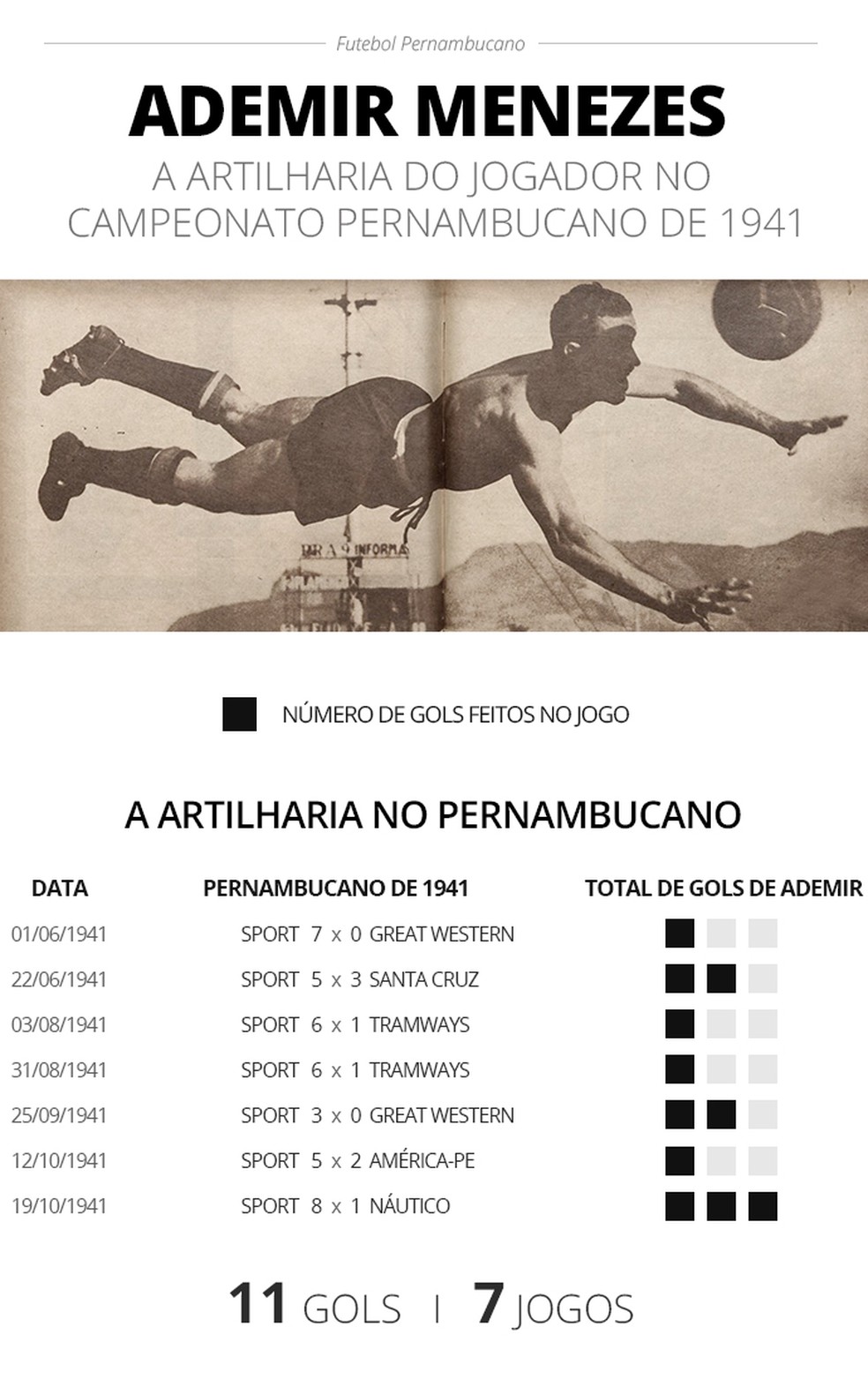 Antes de iniciar seu auge no Sport, Ademir Menezes começou 1941 ainda na disputa do Estadual de 1940. A competição havia sido paralisada para o Campeonato Brasileiro de Seleções Estaduais e só foi retomada no primeiro semestre deste ano.