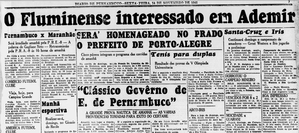 Na preparação para o duelo com o Ceará, inclusive, Ademir recebeu elogios contundentes do técnico Oswaldo Salsa, conforme aponta a publicação do jornal Pequeno do dia 14 de dezembro de 1940.