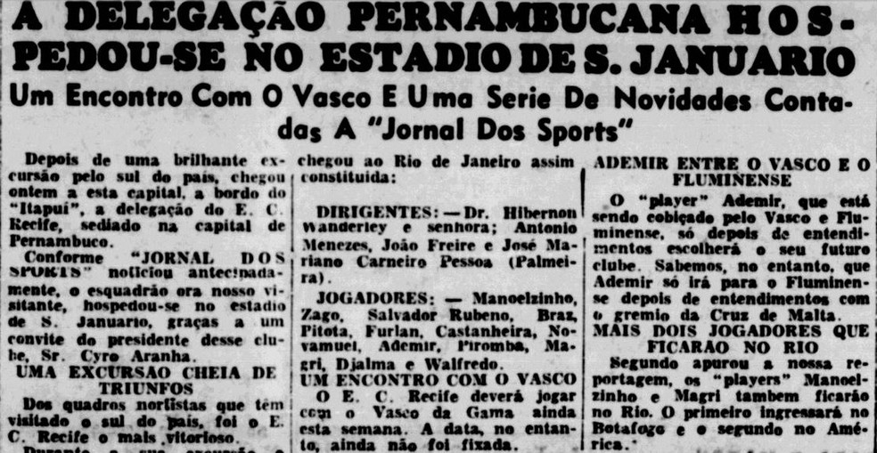 E, chegando até aqui nessa história, você já sabe que Ademir cumpre com sua missão com velocidade, assistências e gols. O Sport aproveitou que vários jogadores do seu time campeão estadual já estavam no Rio de Janeiro com a seleção pernambucana e foi até a capital fluminense para uma excursão histórica.