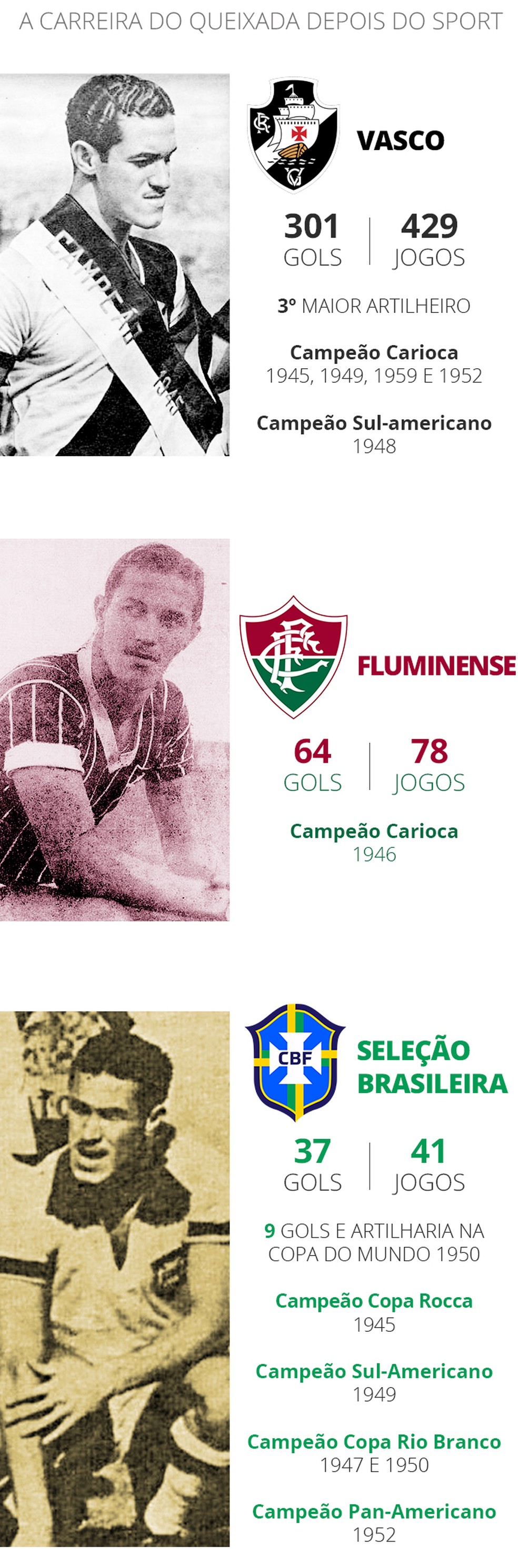 Mesmo sem o título da Copa do Mundo, Ademir foi um campeão por natureza. Antes e depois daquele Mundial, fez 301 gols só pelo Vasco e empilhou taças no chamado Expresso da Vitória. Também foi vencedor no Fluminense. Uma sina que, na verdade, nasceu no Recife, sua terra natal, e vem carregada de inovações para a função de um homem de ataque.