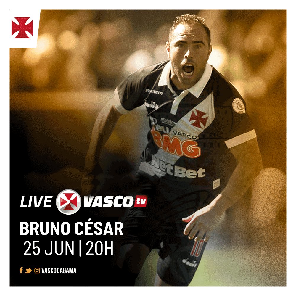 Bruno César participará de live na VascoTV nesta 5ª às 20h