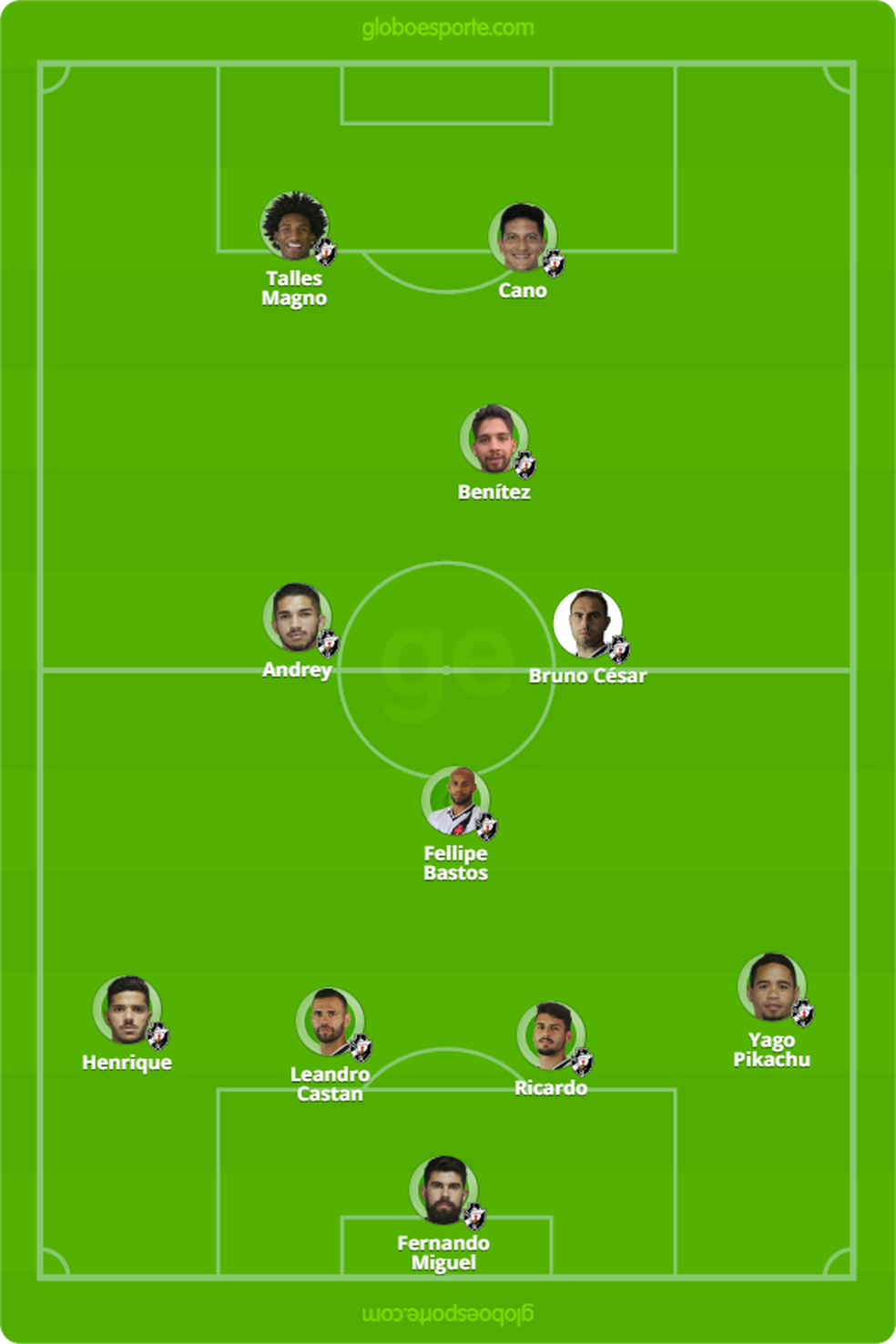 Em sua estreia na condição de treinador do Vasco, Ramon Menezes levará a equipe que mais repetiu desde os retornos aos treinos em São Januário. Não tem mistério, jogam Fernando Miguel, Pikachu, Ricardo Graça, Leandro Castan e Henrique; Fellipe Bastos, Andrey, Bruno César e Benítez; Talles Magno e Cano.
