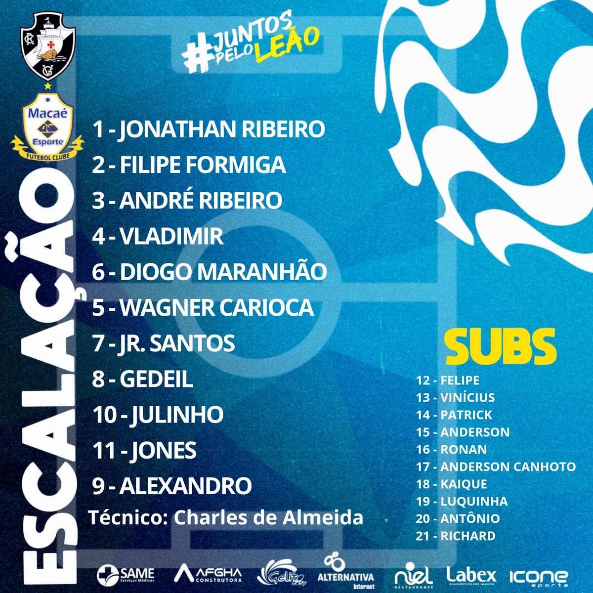 Confira a escalação do Macaé para o jogo deste domingo contra o Vasco