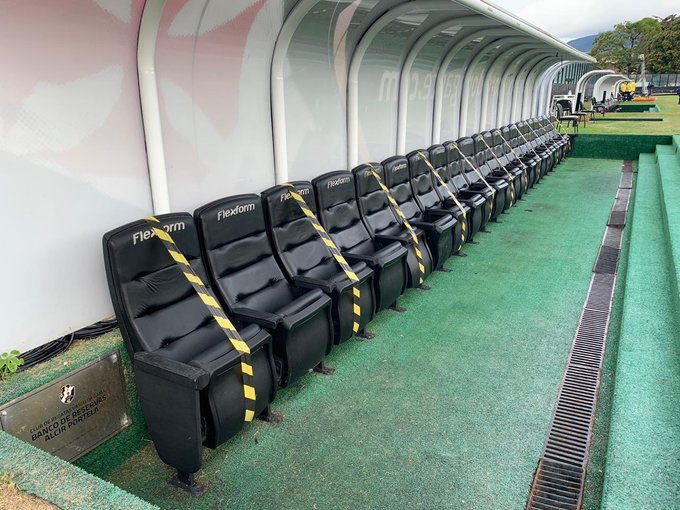 Os bancos de reservas de São Januário também respeitam o protocolo do Jogo Seguro, com o devido espaçamento.