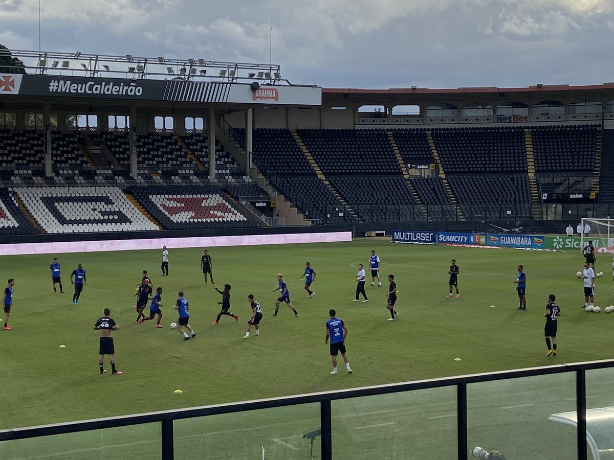 Jogadores do Vasco se aquecem no gramado de São Januário; veja foto