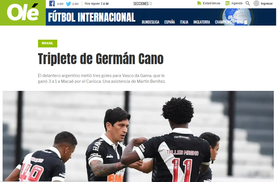 El ex Chacarita, Lanús y Colón se lució en el match ante Macaé, por el torneo Carioca, en el retorno al fútbol tras el parate por el coronavirus. El primero fue de penal, el segundo a pase de Martín Benítez (de discreta actuación, según Globoesporte), y el tercero también definió libre. Lo increíble fue el gol que se perdió cerca del final del partido, con el arquero vencido. Hubiese sido el primer jugador del Vasco en meter cuatro goles en un juego después de 18 años...
