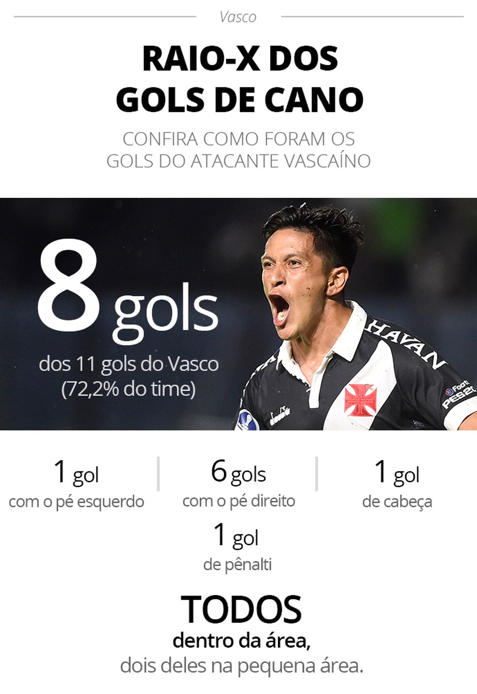 Nesse pouco tempo de Vasco, Cano mostrou que sempre busca definir as jogadas com poucos toques na bola. Em apenas dois dos oito gols que marcou, encostou mais de uma vez na bola.