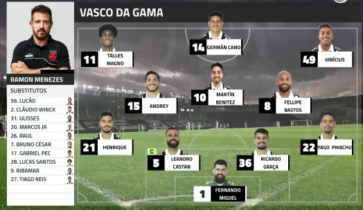 Vasco confirmado por Ramon. Mesmo time da vitória sobre o Macaé. #trcolina