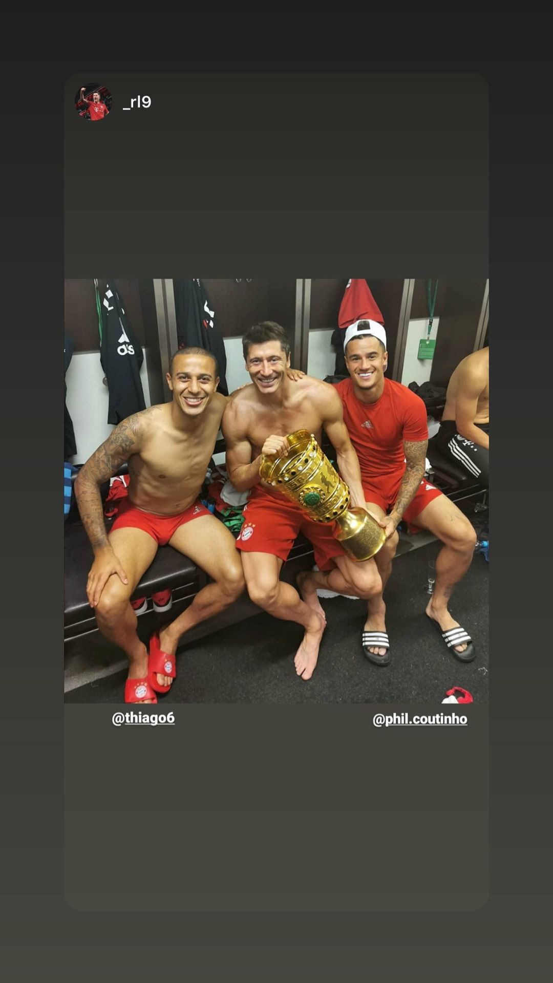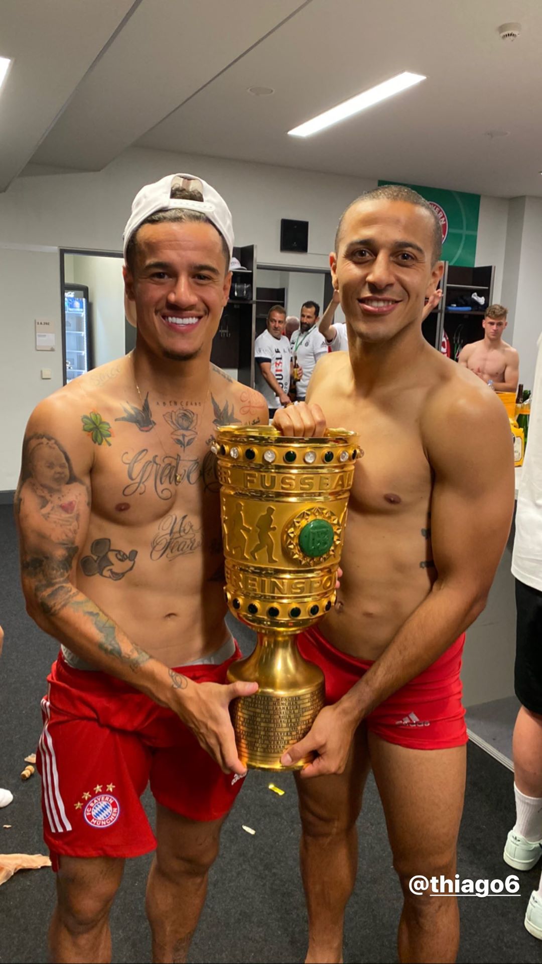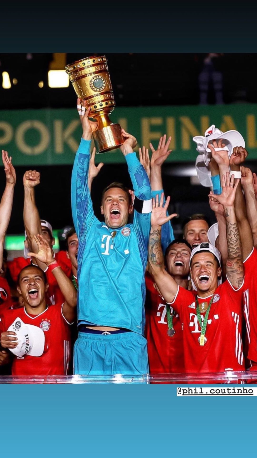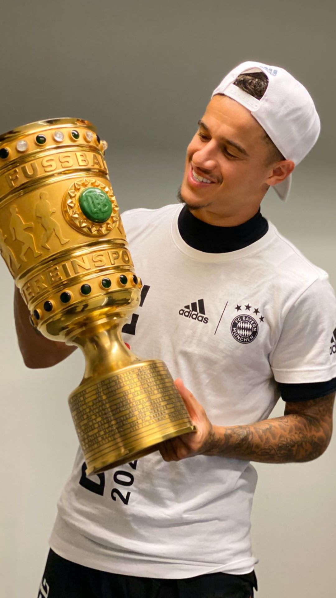 Campeão da Copa da Alemanha pelo Bayern de Munique, Philippe Coutinho posta fotos com a taça