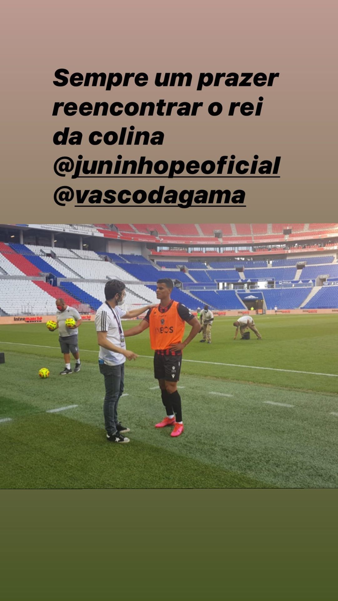 Hoje no Nice-FRA, ex-vascaíno Danilo Barbosa posta foto de reencontro com Juninho, dirigente do Lyon