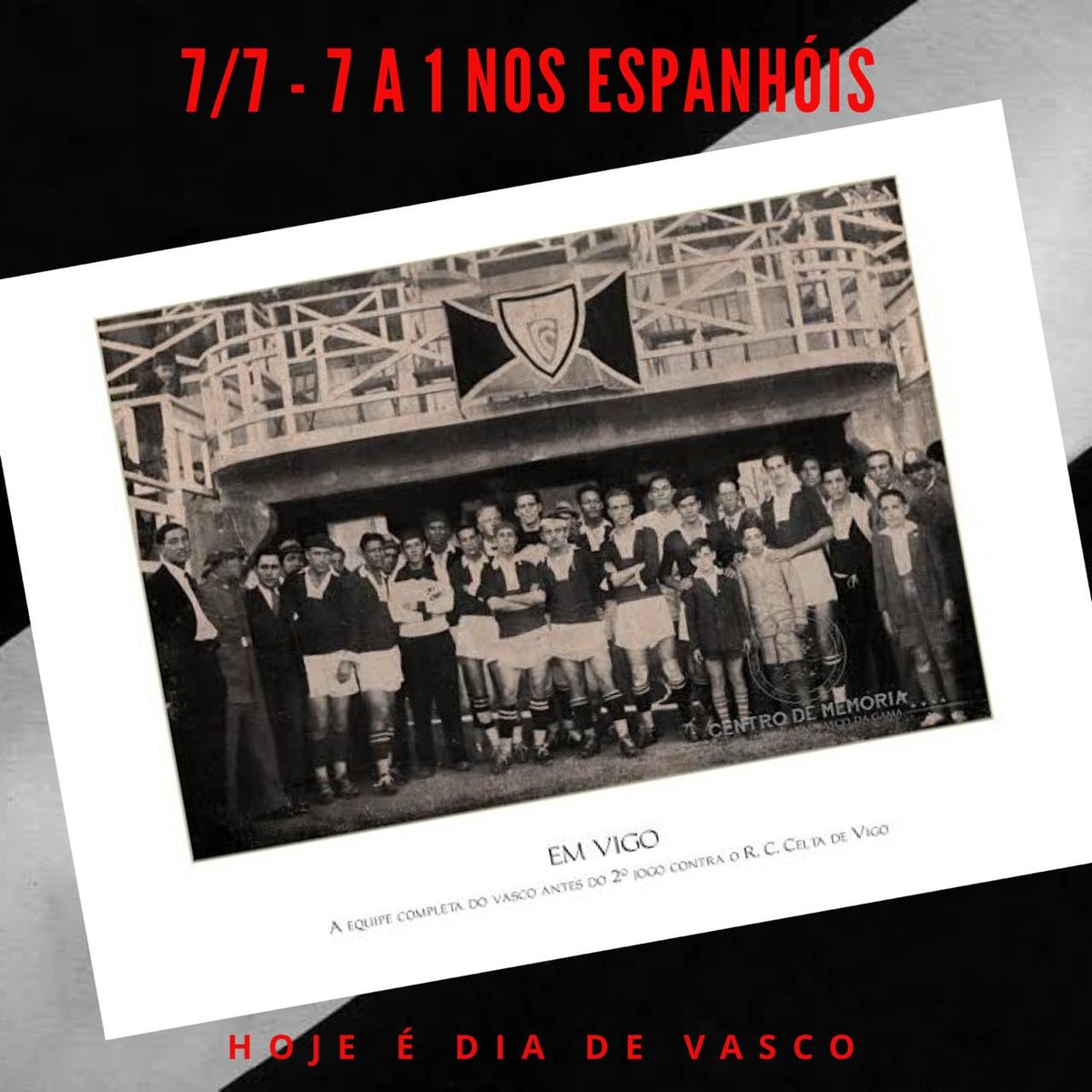 Hoje é dia de 7 a 1. Foi na primeira excursão do Club à Europa, em 1931. A vítima foi o Celta de Vigo e os algozes, Bahianinho (3), Nilo (2), Russinho e Mário Mattos. Era o futebol Vascaíno encantando o velho continente e elevando o nome do Brasil no exterior.