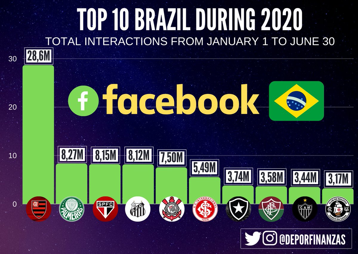 ??? Os 10 clubes brasileiros com mais engajamento no #facebook durante o 1º semestre de 2020!