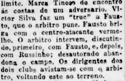 Durante a partida, o árbitro chegou a abandonar o campo após discussão justamente com Fausto e Russinho. Os dirigentes dos dois clubes tiveram que intervir e convencer o juizão a voltar pro jogo.