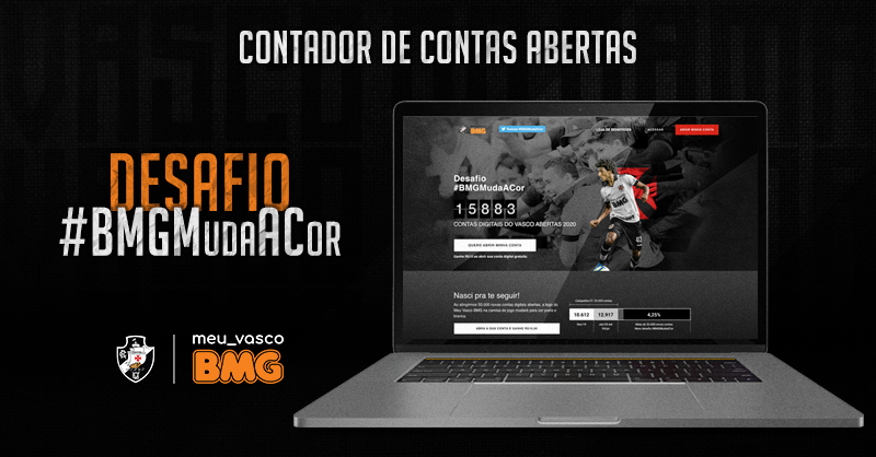 Já somos mais de 15 mil vascaínos apoiando a Campanha #BMGMudaACor. Se atingirmos a meta de 50 mil contas abertas no #MeuVascoBMG, a logo no uniforme do Vascão passará a ser preto e branco. Todas as contas abertas em 2020 já estão valendo! Abra sua conta: https://t.co/njmyPwL0w0