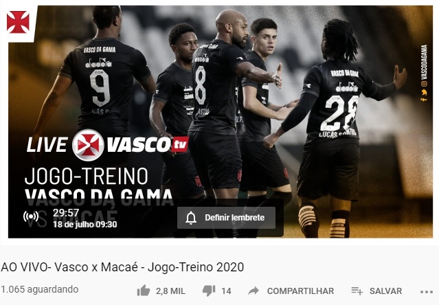 A uma hora do início do jogo-treino, 1.065 pessoas aguardam na VascoTV no Youtube