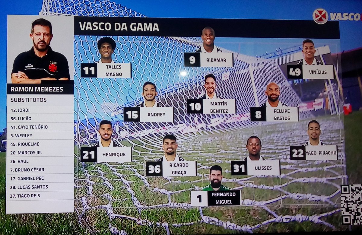 Apesar de não constar na escalação que foi mostrada na transmissão, Kaio Magno está no banco de reservas. Cláudio Winck foi poupado por ter levado uma pancada no treino de ontem. #VascoENM