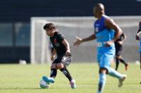Assim como fez com o capitão Leandro Castan no jogo-treino da última quarta-feira, diante do Porto Velho-RO, a comissão técnica também decidiu preservar o artilheiro Germán Cano e começou com Fernando Miguel, Yago Pikachu, Ulisses, Ricardo Graça e Henrique; Andrey, Fellipe Bastos e Benítez; Vinícius, Talles Magno e Ribamar. O primeiro tempo foi de muita intensidade e bom nível de atuação da equipe titular. O gol saiu rápido, logo aos dois minutos, em jogada bem trabalhada que começou na esquerda e foi até a direita com Fellipe Bastos, que deu lindo lançamento para Talles Magno na área. O garoto driblou o goleiro e conferiu: 1 a 0.