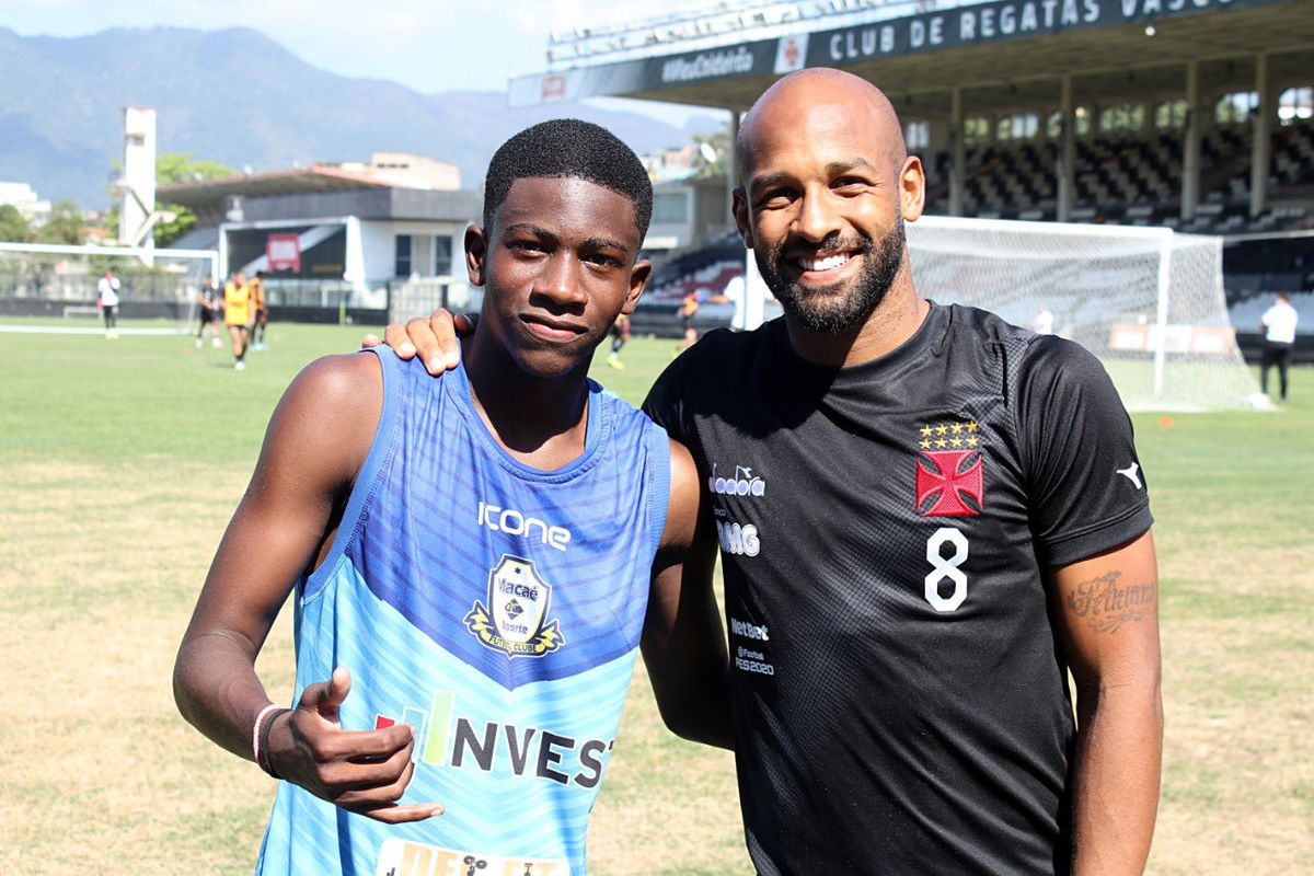 David Tota, volante de 16 anos, do Macaé: 'Tem um significado muito importante (a foto). O Fellipe Bastos é um dos meus ídolos por ser da minha posição e também na vida'.