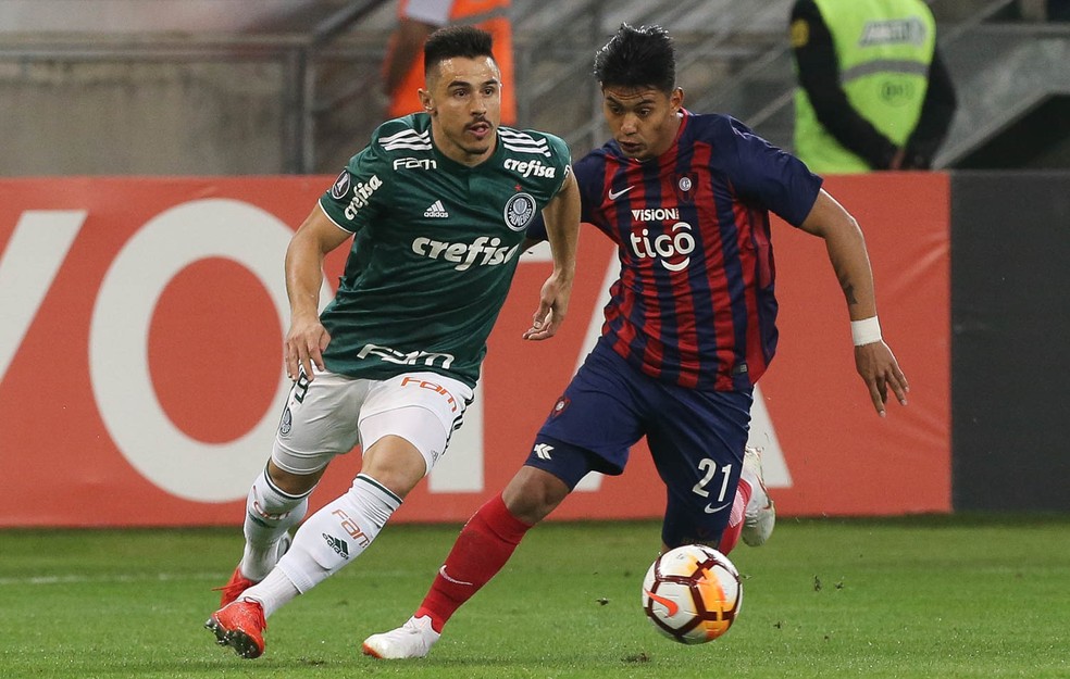 Santiago Arzamendia durante a partida contra o Palmeiras com a camisa do Cerro Porteño — Foto: Divulgação/ Palmeiras