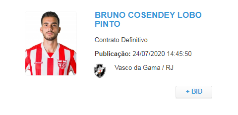 Contrato de Bruno Cosendey com o Vasco é reativado no BID da CBF