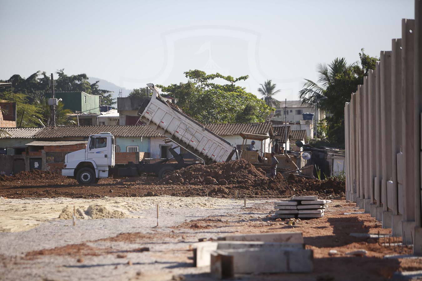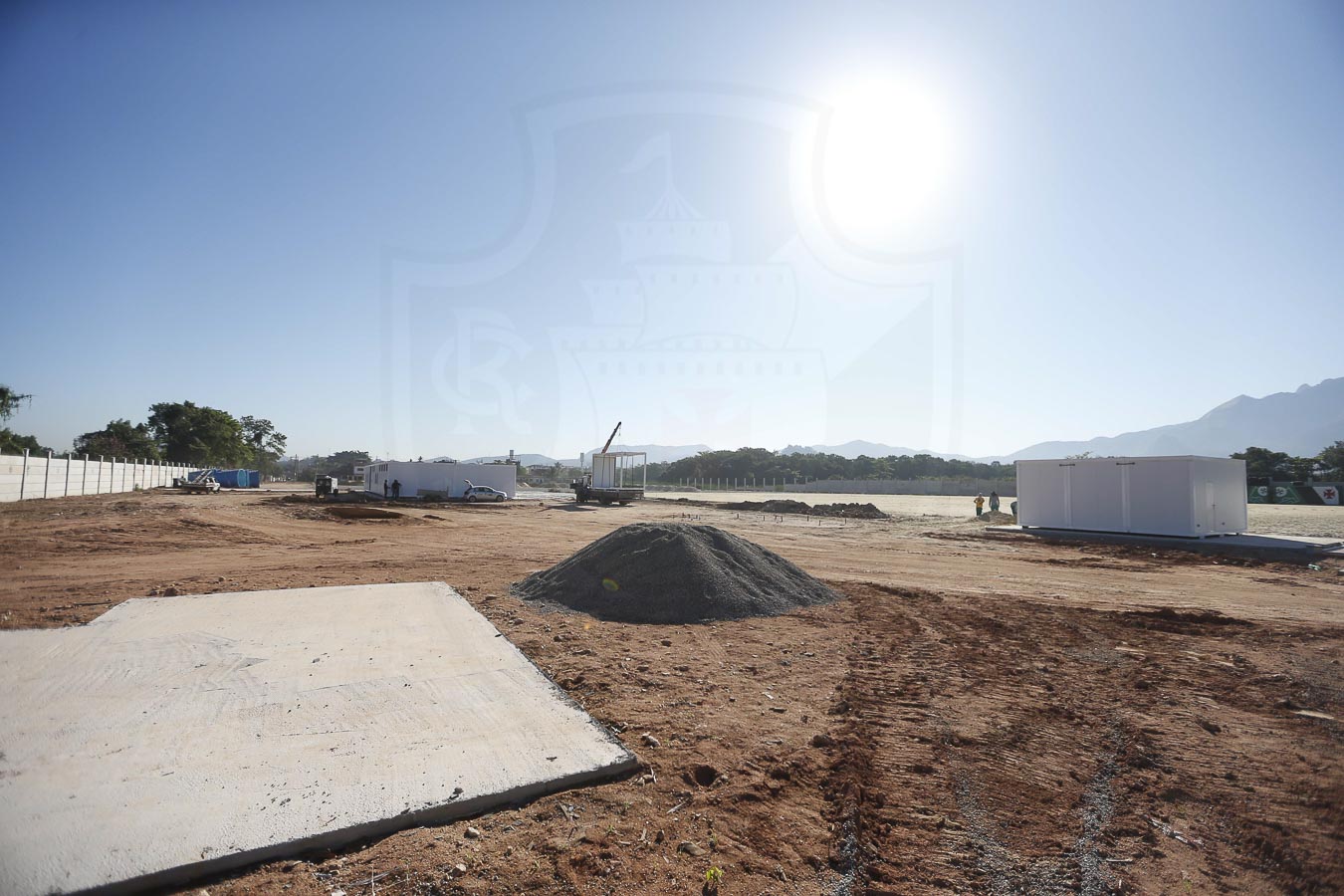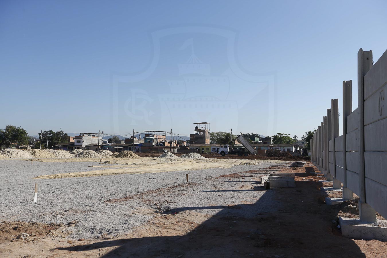 Nesta semana a equipe de engenharia avançou no Nosso CT nas obras relacionadas ao muro e aterro dos fundos, telhado da sala de imprensa, calçadas externa e interna, poço artesiano, instalações gerais, distribuição de areia do campo 2 e irrigação dos campos 1 e 2.