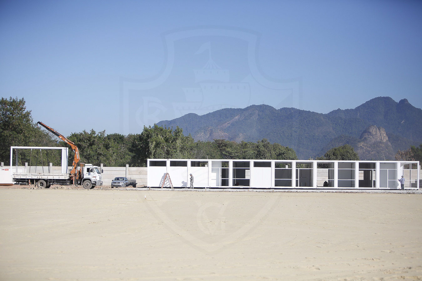 Grande destaque da semana foi o início da instalação dos módulos das estruturas provisórias.