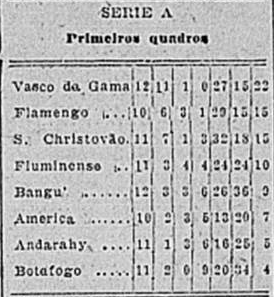 VASCO: Nélson; Leitão e Mingote; Nicolino, Bolão e Arthur; Paschoal, Torterolli, Arlindo, Cecy e Negrito. T: Ramón Platero.
