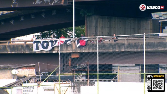 Com direito a faixa, torcedores se posicionam em viaduto para assistir ao jogo-treino; veja foto
