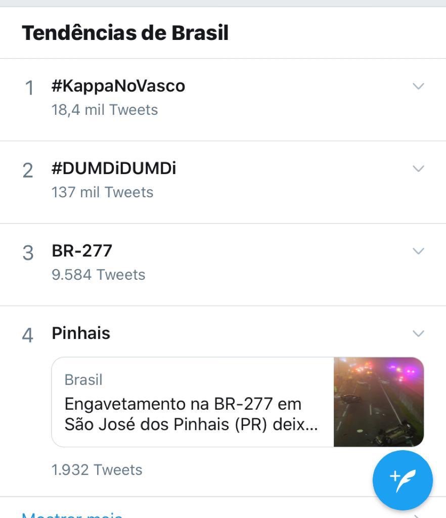 #KappaNoVasco é o assunto mais comentado no Twitter no Brasil na manhã desta 2ª-feira