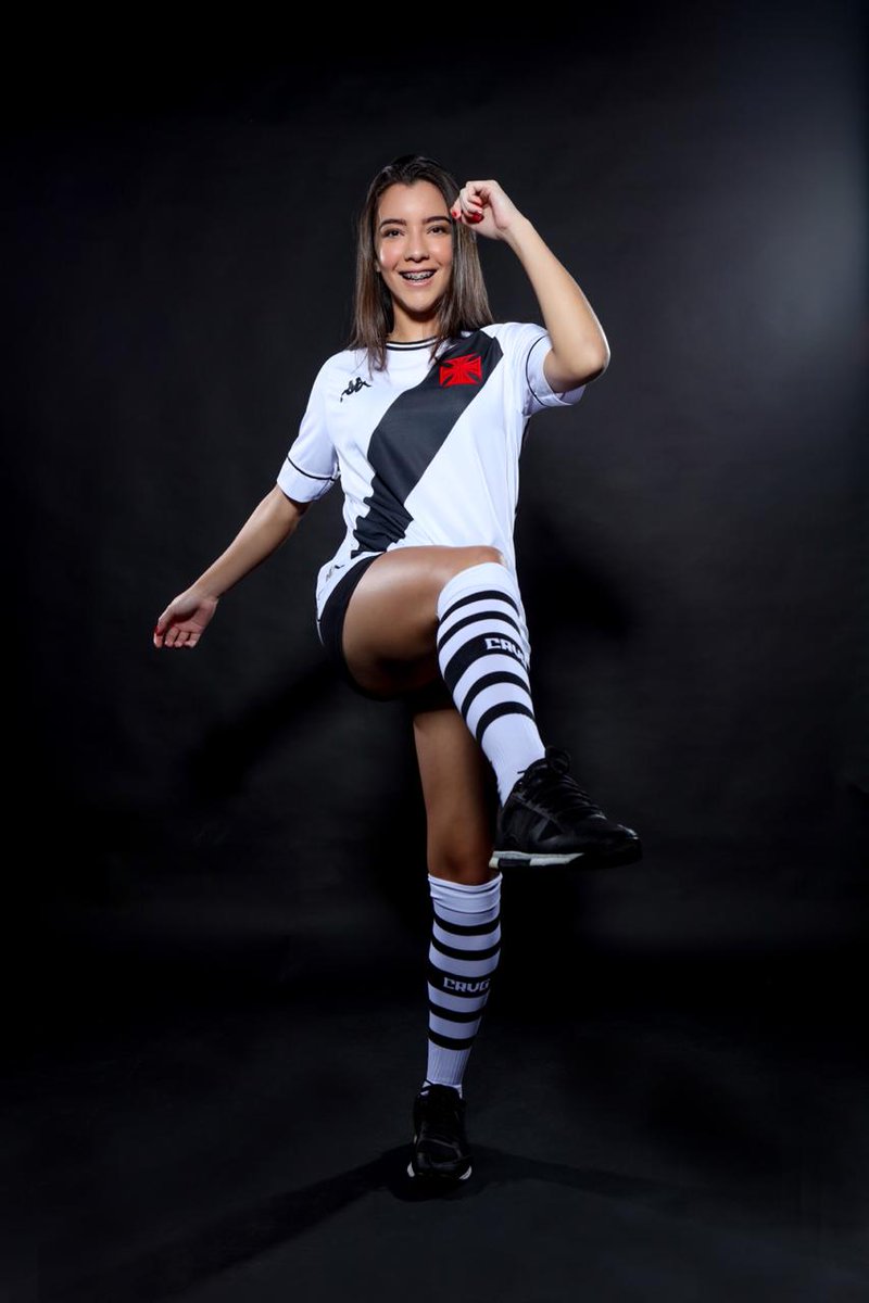 Feminino: Lateral-direita Ariely apresentou o novo uniforme feminino do Vasco; veja fotos