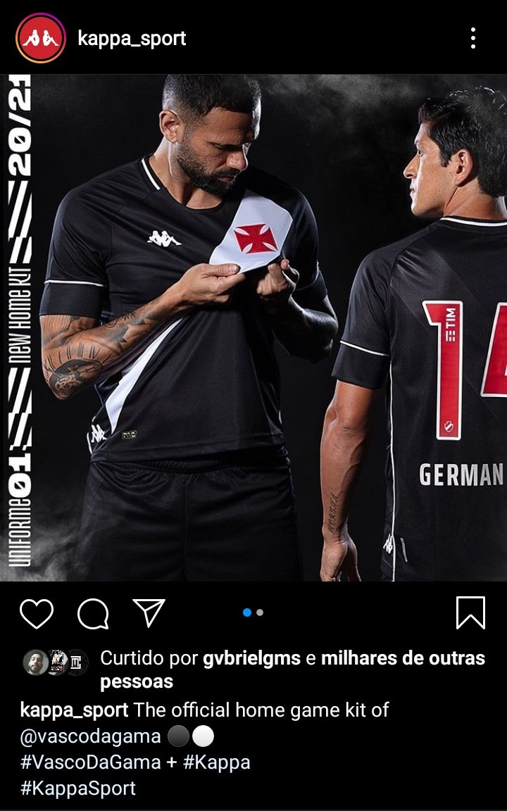 Kappa divulga novos uniformes do Vasco em sua página internacional no Instagram; veja