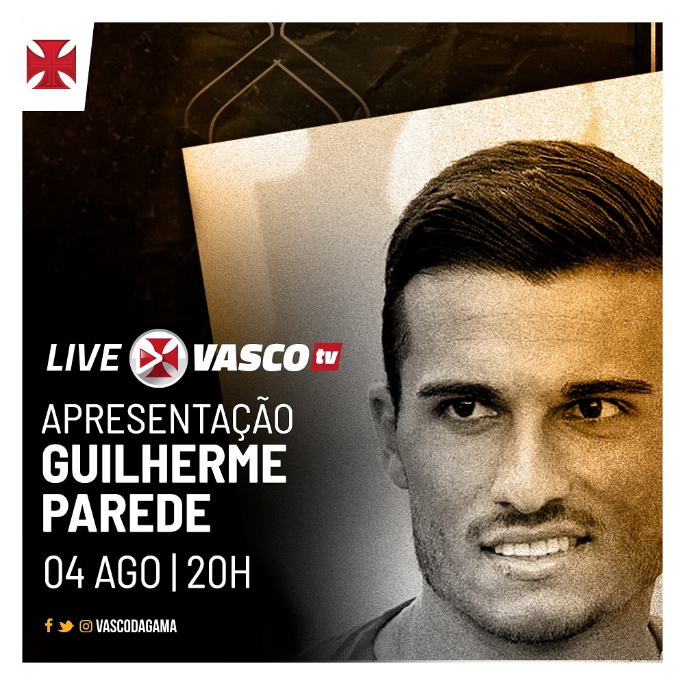 VascoTV anuncia live de apresentação de Guilherme Parede para esta 3ª-feira às 20h