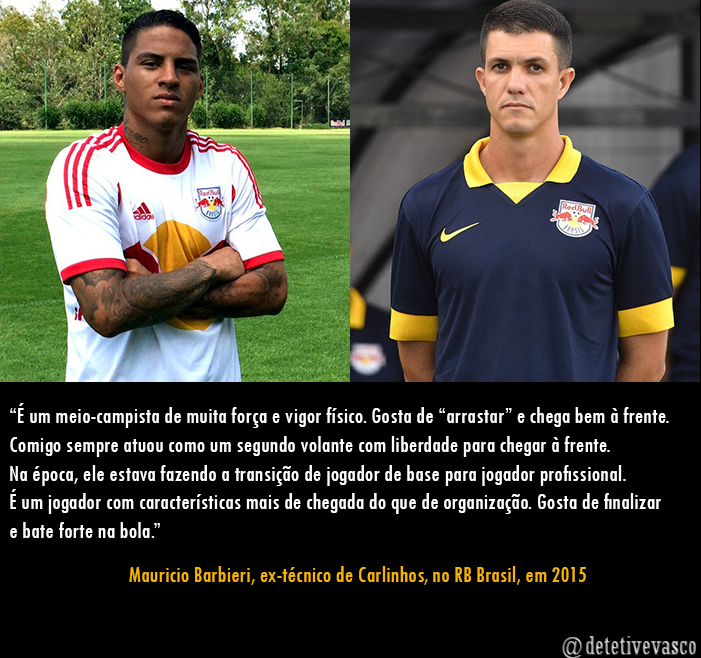 Prestes a ser anunciado pelo Vasco, dias atrás busquei informações sobre o meia Carlinhos. Conversei com o técnico Mauricio Barbieri que, apesar de um período breve, comandou o jogador no Campeonato Paulista, de 2015, em sua passagem pelo RB Brasil. Confira a opinião.?️